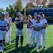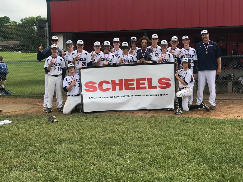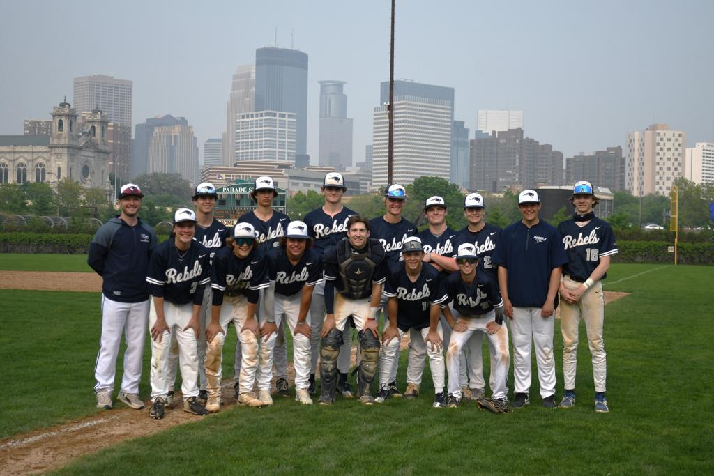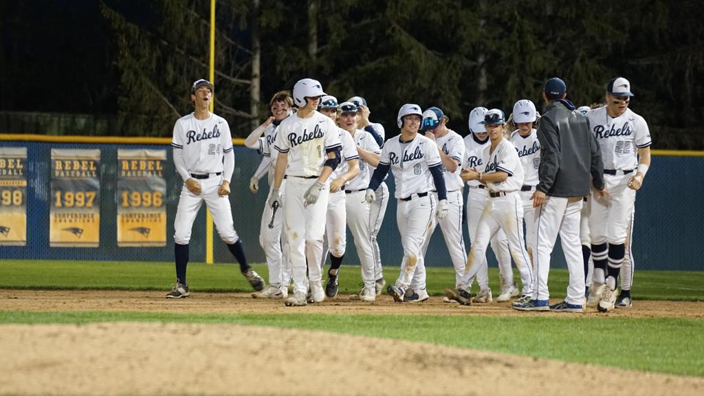 Senior Zachulka congratulating Senior Jack Loven on his game winning hit